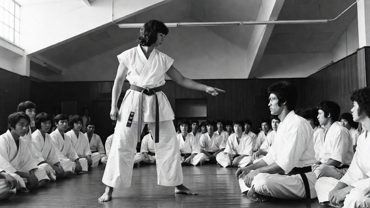 Bleiben Sie dran, denn was Bruce Lee als Nächstes sagte, ist der Teil dieser Geschichte, über den niemand spricht, und er ist wichtiger als die 13 Sekunden. Dann setzt sich Bruce Lee auf die Matte, nicht auf einen Stuhl, nicht in respektvoller Lehrdistanz. Auf die Matte, im Schneidersitz mitten im Dojo, und er bedeutet Diana, sich ihm gegenüber zu setzen.