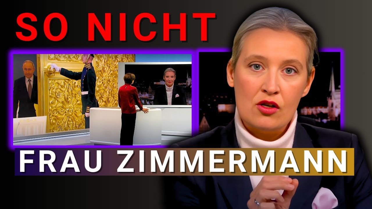 Frau we ich sehe sie sind schon voll im   Wahlkampfmodus Friedrich Merz hat noch   nie deutsche Soldaten nach in die   Ukraine schicken wollen das kann ich   glaube   ich da gibt es sehr unterschiedliche   Meinungen zu ich wüsste gerne von Ihnen   sie versetzen ja auf Russland als ein   kann nur nein noch mal sie sagen es noch   mal falsch Frau Zimmermann ich muss auf   die Richtigkeit bestehen sie haben es   noch mal falsch gesagt al Weidel ist im   Laufe der Zeit über sich hinausgewachsen   der Sieg von Donald Trump gibt und ihrer   Partei enorme Kraft und Hoffnung weiter   für Deutschland zu kämpfen und das Land   wieder aufzubauen und die einzigen die   ihr im Weg stehen außer die Altparteien   ist der ÖR in diesem Fall der ZDF mit   der Moderatorin Frau Zimmermann die wie   immer gegen die AFD feuern muss doch   nicht mit Alice sie feuert ordentlich   zurück denn irgendwann reicht es auch   mal wenn der Punkt nicht schon längst   überschritten ist willkommen zurück bei   mentale Fitness schön dass du wieder