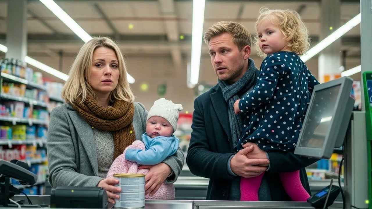 Elsa Schmidt, 32, stand an Kasse 4 und spürte, wie die Müdigkeit schwer auf ihren Schultern lastete. Sie balancierte ihr Leben so, wie sie jetzt ihre Lasten balancierte: auf dem linken Arm Leo, ihr drei Monate alter Sohn, eingehüllt in eine viel zu große, aber warme, rosa Decke. Leo trug eine Strickmütze, die leicht schief saß. Auf dem rechten Arm, der von einer abgenutzten, aber gemütlichen, grauen Wickeljacke bedeckt war, hielt sie eine kleine, schwere Dose Babynahrung – eine spezielle hypoallergene Formel, die Leo brauchte, die aber unverschämt teuer war.