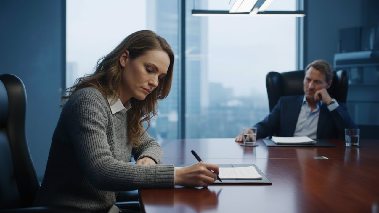 Der Kugelschreiber in Elenas Hand fühlte sich schwer an, wie ein Anker, der sie noch am Boden hielt, während die Welt um sie herum bereits in den Abgrund stürzte. Im 47. Stockwerk der Amsberg Global Group roch es nach teurem Leder, Espresso und rücksichtsloser Arroganz. “Komm schon, Schätzchen”, sagte Robert und trommelte ungeduldig auf die gläserndne Tischplatte.