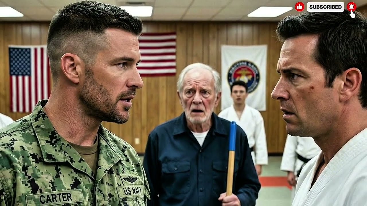 Und als der Schwarzgurt den Eimer zur Seite stieß und lachte, während schmutziges Wasser über die Schuhe des alten Mannes schwappte, schauten die meisten weg und redeten sich ein, dass es nicht ihr Problem sei. Genau in diesem Moment sprach der Mann in Uniform: “Nicht laut, nicht dramatisch, sondern klar genug, um den Raum zu durchschneiden und sagte dem Trainer, er solle Respekt zeigen, denn niemand verdiene es für ehrliche Arbeit wie Müll behandelt zu werden.