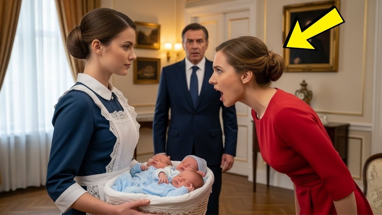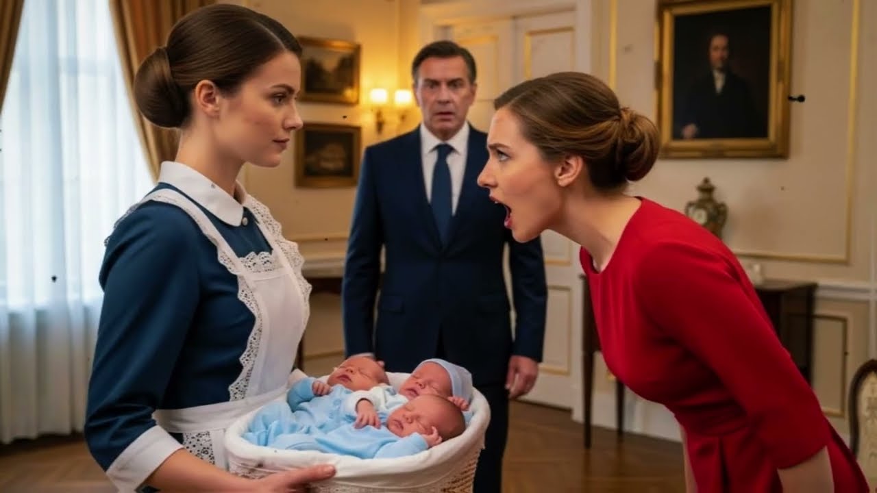Morgen Sononnenlicht fiel durch ein elegantes Gästezimmer, in dem Elena eine einfache blaue Uniform trug und die drei Babys hielt. echte Säuglinge, die sie vorübergehend für ein Pflegeprogramm, das Jonathan unterstützte, hütete. Sie gurten leise in ihren Armen, unschuldig und ahnungslos gegenüber dem menschlichen Sturm, der gleich um sie hereinbrechen sollte.